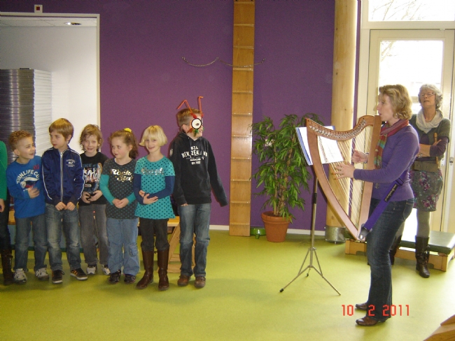 Dan maakt zij een project ( met of zonder harp) of komt muziekles geven, gebasseerd op het thema.