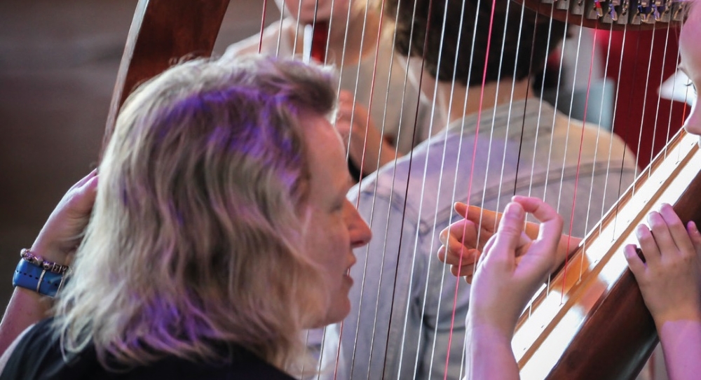 Volwassengroep harpensemble SMO groep in Dronten